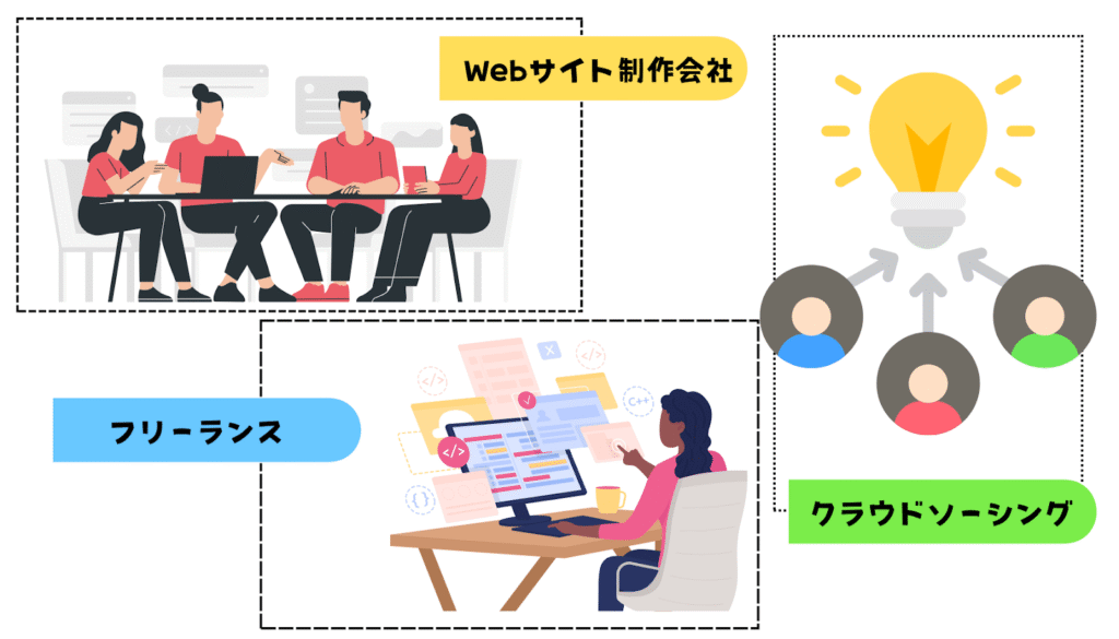 Webサイトの依頼先には主に、Webサイト制作会社・フリーランス・クラウドソーシングの3つの選択肢があります。目的・予算・求める品質・サポート体制によって、最適な選び方は異なります。